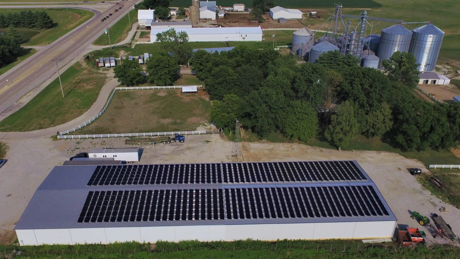 Tom Renner, a legend in Midwest agriculture, installed a 166-kW solar system to power his agricultural operation, John Deere dealership, and antique tractor museum. He used a custom rooftop design that maximized energy production with fewer panels. This system continues to cover 100% of the farm’s energy needs and saves Tom approximately $20,000 per year, supporting both long-term sustainability and operational efficiency.